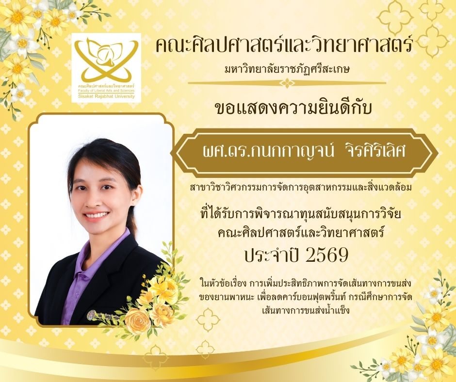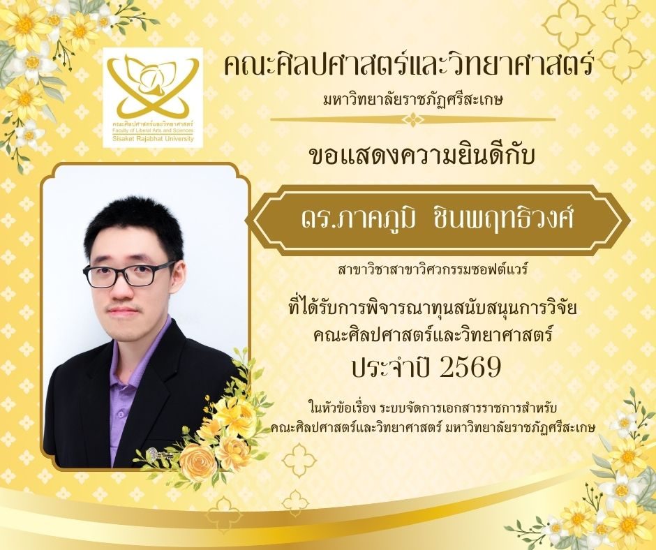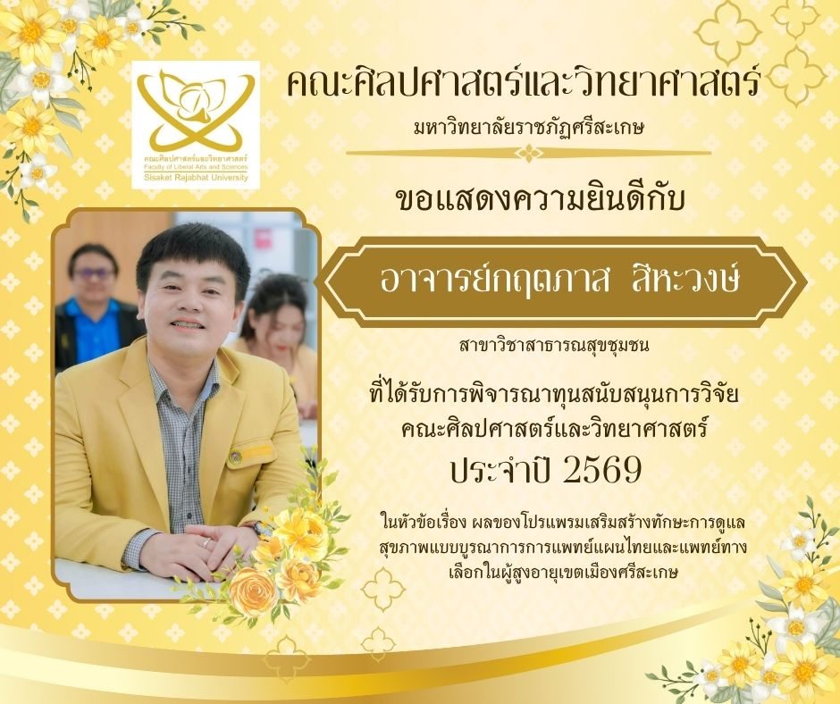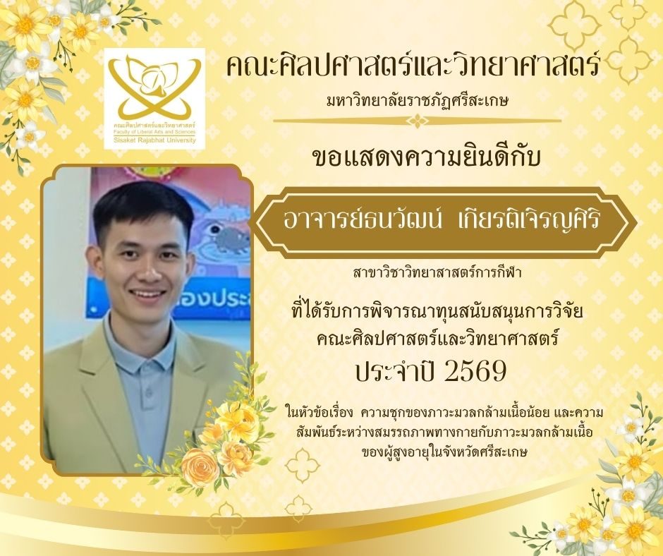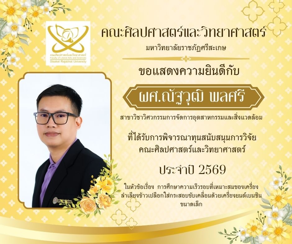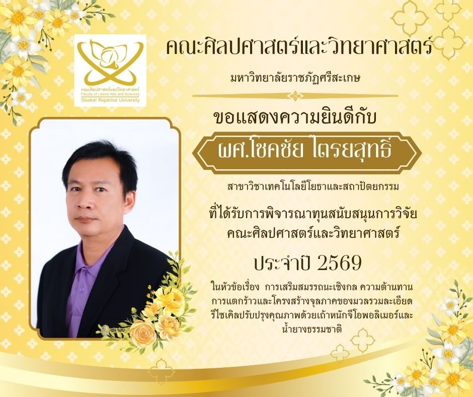ขอแสดงความยินดีแก่ นักวิจัยของคณะฯ ที่ได้รับการพิจารณาทุนสนับสนุนการวิจัย ประจำปีงบประมาณ พ.ศ. 2569